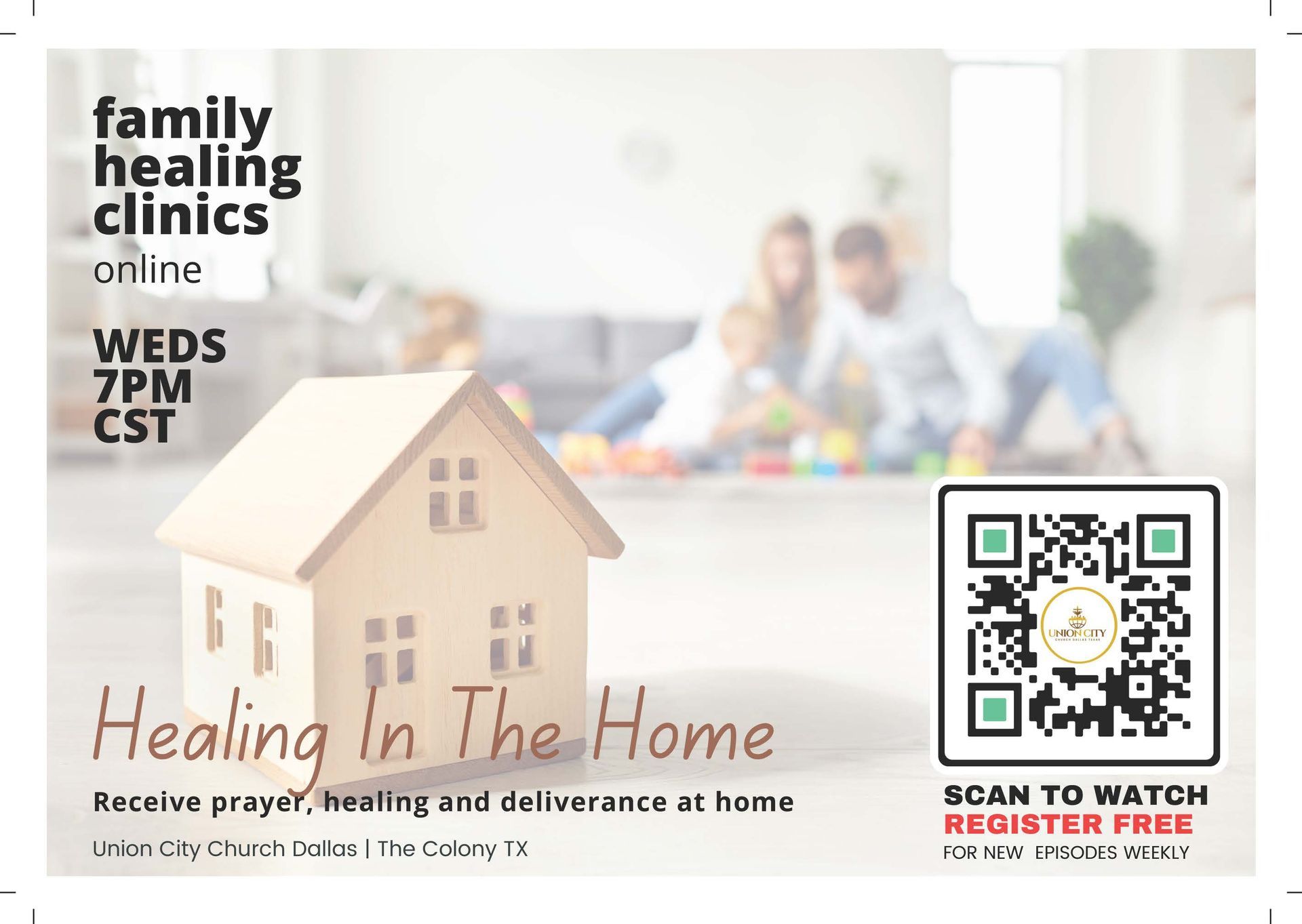 Receive healing for your life and family in the comfort of your own home .