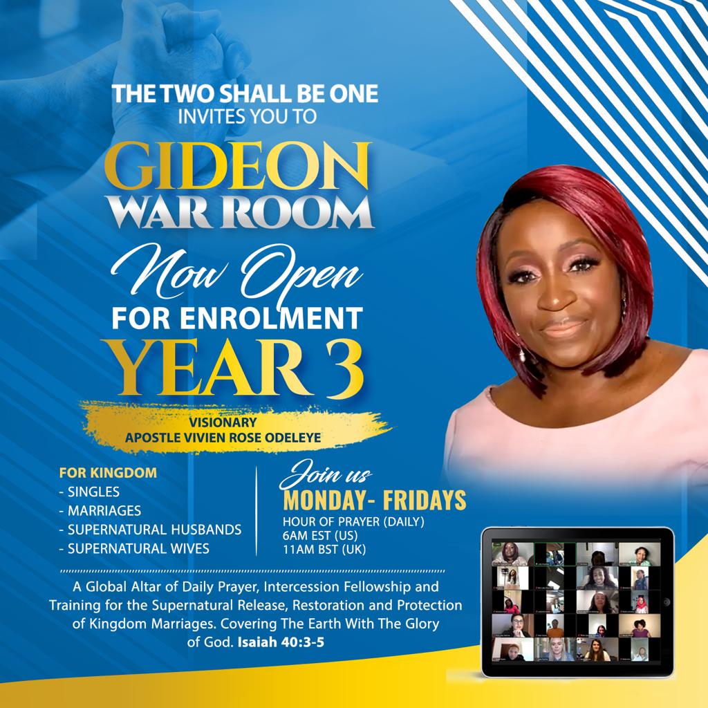 The Gideon War Room is an initiative that the Lord gave to Two Shall Be One Ministry to raise up an altar of global prayer and united intercession. The quick release of answered prayer has come through uniting together. We pray daily, fast weekly and seed monthly, as the blessing of the Gideon War Room altar is activated through our sacrifice that we lay at God’s feet. We also commit ourselves to live a consecrated life and walk righteously before the Lord.